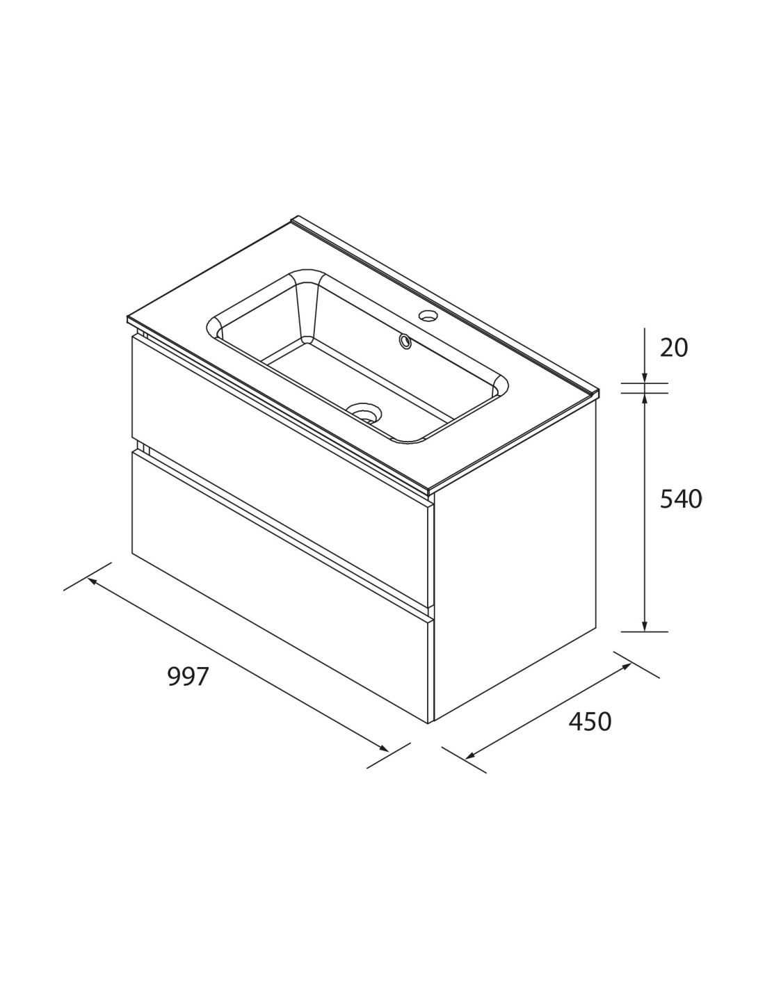 Non include rubinetto, sifone o specchio.