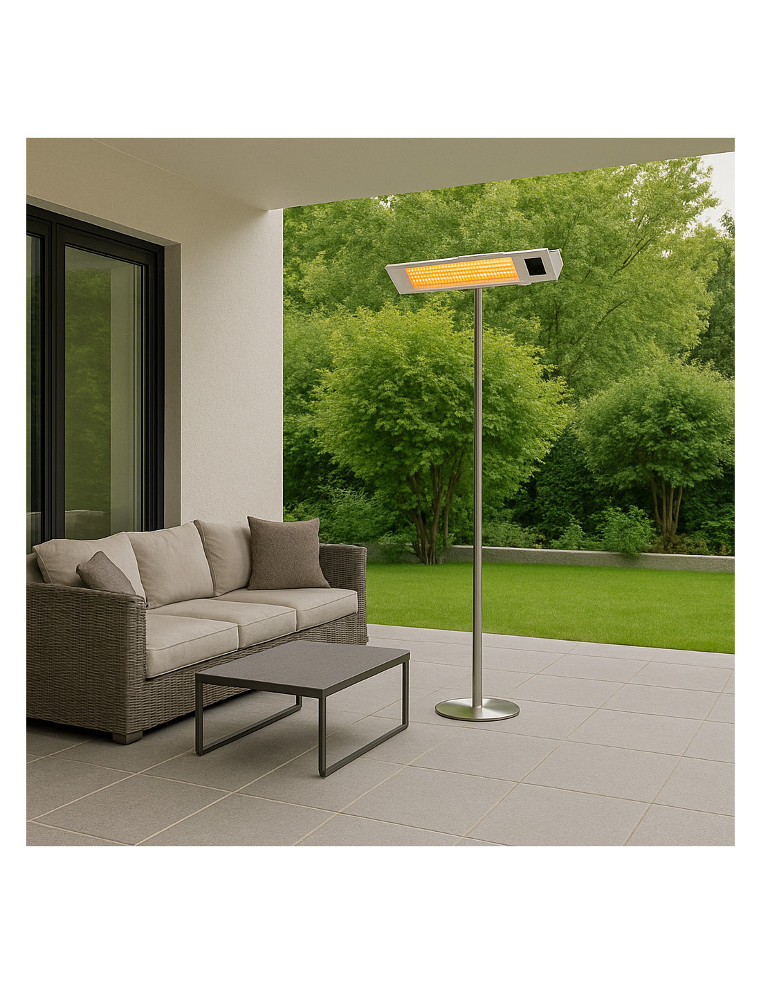 Sined Caldo Ira Inox Palo Wifi Lampada Riscaldante Wifi Esterna Da 2000 Con Kit Completo Di Palo Grigio Riscaldamento da Esterno Onda Corta Ira e Telecomando Con Griglia Per Protezione e Display