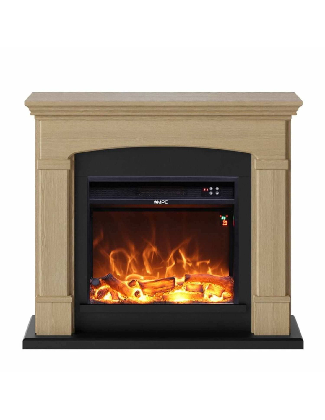 Caminetto da terra dal nuovo colore quercia naturale, design pulito con bordi smussati. La mensola del camino elettrico presenta una finitura rovere multistrato, nonché un delicato centro ad arco, colonne lisce e un telaio centrale con bordi arrotondati. La luce integrata a Led è molto realistica. La profondità di soli 25 cm lo rende poco ingombrante, perfetto per qualsiasi ambiente.Tutto gestibile con un telecomando, e la fiamma può essere attivata indipendentemente dalla modalità riscaldamento. Oltre che con il telecomando potrai scegliere le varie opzioni anche dal pannello frontale.